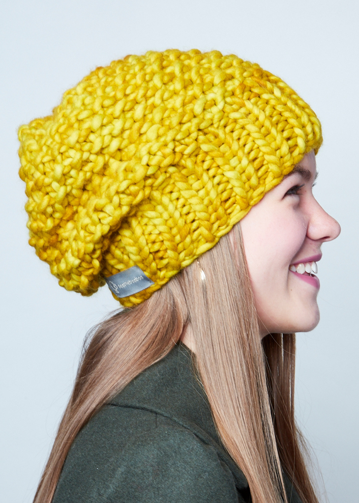 The yarn used to knit the beanies is dyed in small batches resulting in a colour of extraordinary depth, subtle variation and intensity. Each beanie is unique with possible colour variations between beanies of the same colour.