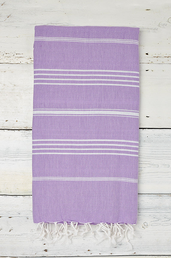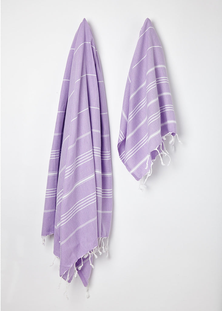 The lavender hammam towel is available in large (180cm x 100cm approx) and small (90cm x 50cm approx)