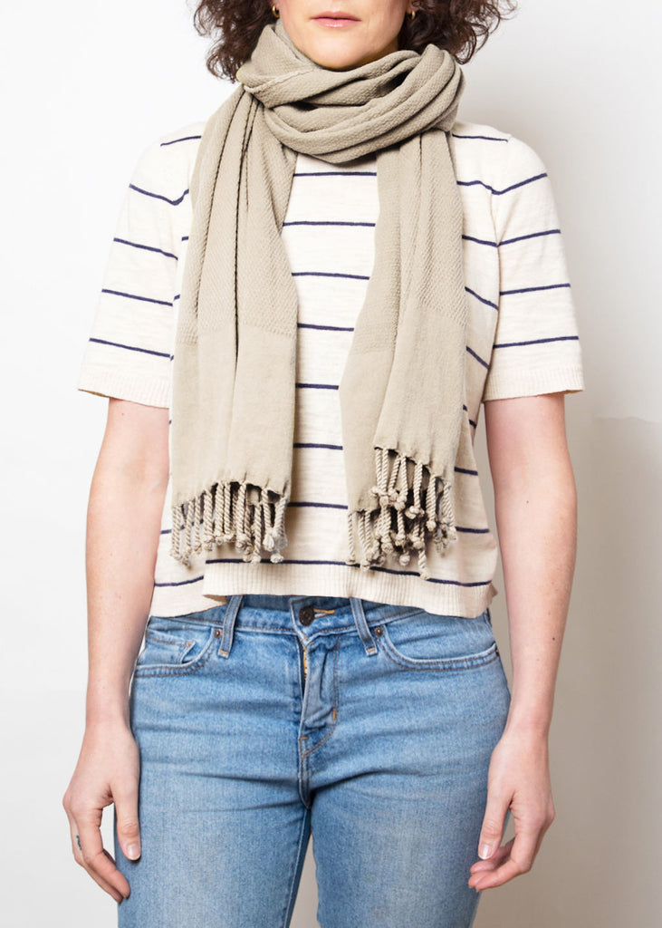 Luxuriate in this earthy, natural coloured Turkish wrap that reminds us of year-round walks by the coast.