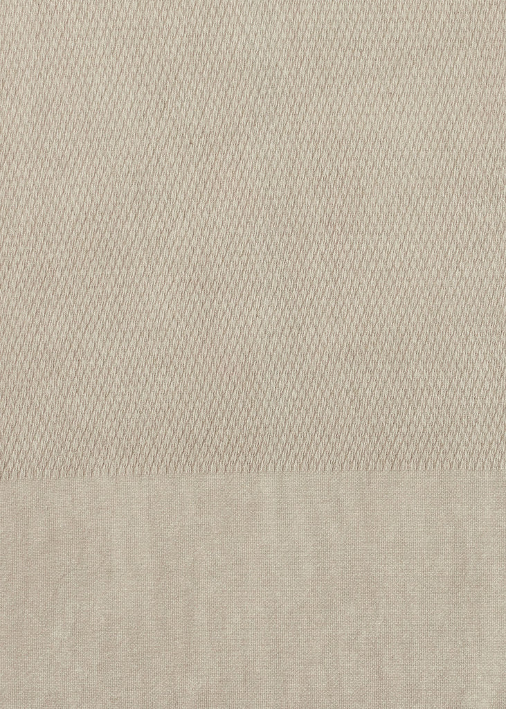 A strikingly soft hammam wrap in Stone, a classic beige coloured towel designed with a decorative diamond weave pattern and twisted tassels.